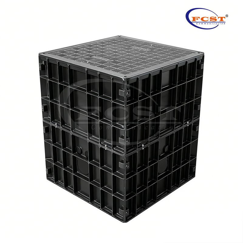 تم تصميم غرفة فتحة الاتصالات FCST-TH-SMC14 بدقة لتوفير الحماية الشاملة والتخزين وتركيب المعدات وحلول الصيانة لوضع أقفال لصق الألياف الضوئية ومنتجات الكابلات تحت الأرض. الجزء السفلي مزود بلوحة قاعدة بها فتحات تصريف. يحتوي كل جانب من اللوحة السفلية على فتحة مثقوبة مسبقًا مقاس 125 مم وفتحتين مقاس 50 مم، كل منهما مزود بغطاء. تتوافق الثقوب المحفورة مسبقًا مع نطاقات قطر الأنابيب الأخرى ويمكن حفرها في الموقع.